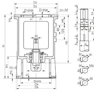 XD、XS型機架輸入端接口尺寸減速機輸出軸徑d0