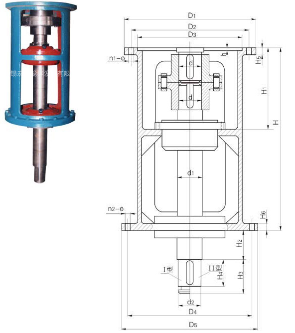 機架型號 減速機 D1 D2 D3 n1-φ D4 D5 n2-φ d d1 d2 h H H1 H2 H3 H4 H5 H6